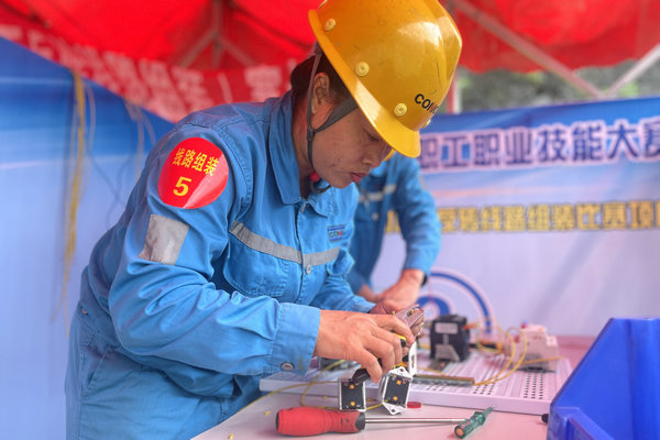 電氣線路組裝賽場,看似平靜卻充滿了緊張的氣息。選手們面對復(fù)雜的電氣元件和線路圖,沉著冷靜。一位電工手指翻飛,剝線、接線、固定,動作行云流水。紅、綠、黃各色導(dǎo)線在手中仿佛被賦予了生命,精準地連接在接觸器、繼電器和端子之間。