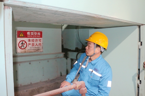 在這之后,孫林通的目光和腳步,先后三次回到這個(gè)位置。他俯身觀察,對(duì)比記錄,確認(rèn)滲水量雖然很小,但卻在持續(xù)地增加。他深知任何的疏忽或僥幸,都可能讓隱患在“再觀察一下”的拖延中升級(jí)。清晨六點(diǎn),當(dāng)滲水現(xiàn)象已轉(zhuǎn)為清晰可見(jiàn)的細(xì)流時(shí),孫林通果斷拿起對(duì)講機(jī),向上級(jí)進(jìn)行了清晰、準(zhǔn)確地匯報(bào):“4#輥壓機(jī)動(dòng)輥有載端滲水加劇,疑似內(nèi)部構(gòu)件異常,請(qǐng)設(shè)備人員立即現(xiàn)場(chǎng)確認(rèn)!”