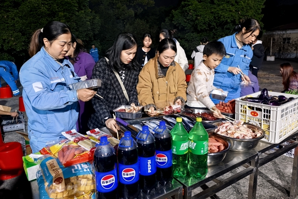 夕陽(yáng)西下,廣場(chǎng)上炊煙裊裊升起,多個(gè)燒烤爐同時(shí)開(kāi)火,瞬間煙火氣升騰,香氣彌漫開(kāi)來(lái)。平日里在工作崗位上嚴(yán)謹(jǐn)細(xì)致的同事們,此刻化身“燒烤大師”,大家分工協(xié)作,有的嫻熟地翻動(dòng)著肉串、雞翅、香腸,有的精心調(diào)配著醬料,有的負(fù)責(zé)傳遞美食。現(xiàn)場(chǎng)歡聲笑語(yǔ),一串串燒烤,一杯杯飲料,傳遞的不僅是美味,更是同事間深厚的情誼與關(guān)懷。大家圍坐在一起,暫時(shí)放下工作的繁忙,分享著美食,暢談著生活趣事和家庭瑣事,疲憊與壓力隨著縷縷炊煙,悄然消散在晚風(fēng)中。
