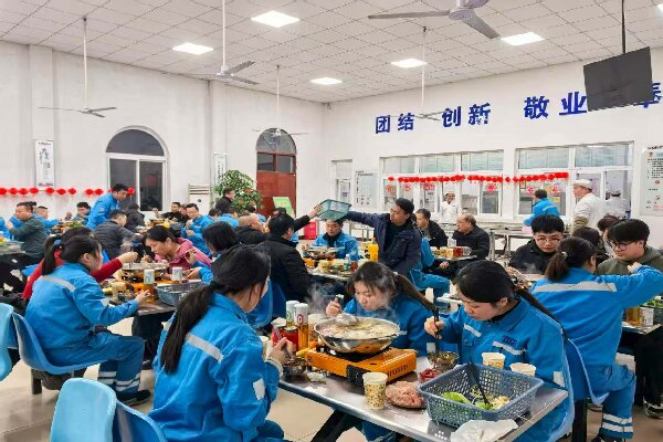 趣味競賽結(jié)束后,暖胃暖心的特色小火鍋環(huán)節(jié)溫馨開啟。鮮香濃郁的鍋底、琳瑯滿目的食材,讓員工們在寒冬中感受到了家的溫暖與企業(yè)的關懷。大家圍坐一桌,舉杯暢談,分享著工作中的趣事與生活中的感悟,每位員工也依次分享了新年愿望,現(xiàn)場其樂融融,暖意濃濃。與此同時,廠區(qū)內(nèi)早已換上了“新年盛裝”,紅燈籠、新年窗花等裝飾錯落有致,處處洋溢著喜慶祥和的節(jié)日氛圍,讓每一位員工都能沉浸式感受元旦的喜悅。