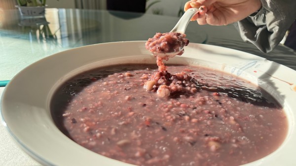 清晨,海拔三千多米的八宿還浸在冬日的清冽里,而八宿海螺食堂的窗戶早已暈開一團(tuán)溫暖的霧氣。霧氣里,氤氳著一股平原地區(qū)熟稔的醇厚甜香——那是糯米、紅豆、紅棗、花生在文火慢燉中交融的氣息,是臘八粥的味道。幾位早到的藏族同事循著香氣駐足,好奇追問:“今天的早飯,怎么這樣香?”